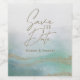 Awash Elegant Watercolor Textur in Ozean Farbweg von Aqua Aquamarin Blue Green, und Imitate Gold Foil handgezeichnet Akzente. Elegante Hochzeit Save the Date Weinetiketten mit hübscher Kalligrafie Signature Script Schriftart! ~ Karo mein Shop zu sehen, die gesamte Hochzeitssuite für dieses Design!