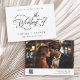 Eine elegante Schwarz-Weiß-Hochzeit rette dem Datum, mit romantischer, Wirbler Kalligraphie-Schrift mit optionalem Text und einem Foto auf der Rückseite. Ideal für jede Jahreszeit. Für eine weiter gehende Anpassung dieses Designs klicken Sie bitte auf den BUTTON BLAU DESIGN TOOL oben!