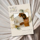 Erzählen Sie Ihre Strandfeier mit unserem eleganten Beach Wedding Foto Save the Date! Dieses atemberaubende Design umrahmt Ihr Lieblings-Verlobung-Foto mit einer üppigen tropischen Blattlinie und schafft so eine perfekte Mischung aus Naturschönheit und Raffinesse. Die eleganten Schriftart fügen eine Touch der Raffinesse hinzu, die sich Save the Date ideal für Paare eignet, die eine Hochzeitsreise an der Küste oder am Ziel planen. Personalisieren Sie es mit Ihren Namen, Hochzeitstag und Ort, und Set den Ton für Ihre tropische Feier. Ob Sie sich nun durch den Ozean austauschen oder eine Sonnenuntergangszeremonie veranstalten, dieses Design vereint die mühelose Schönheit und Romantik Ihres besonderen Tages.