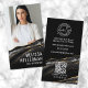 QR-Foto-Logo-Vertikale Visitenkarte für Schwarz und Gold Akzent. Diese elegante, vertikale Visitenkarte verbindet Eleganz und modernen Stil, ideal für professionelle Unternehmen, kleine Unternehmer, Freiberufler und Berater, die sich gewollt haben, sich zu überzeugen. Die Vorderseite weist einen fett schwarzen Hintergrund mit weißen Schriftart auf, der durch ein auffallendes schwarz-goldfarbenes Design mit goldfarbenem Glitzer, das an den unteren Rändern für eine luxuriöse Touch detailliert ist, noch verstärkt wird. Ihr Foto, Ihr Firmenlogo, Ihr Name, Ihr Titel oder Ihr Firmenname werden in einem beruflichen und scharfen Layout dargestellt. Die Rückseite setzt den schwarzen Hintergrund mit passenden Akzenten- und Glitzer-Akzenten ganz unten fort und behalte das Aussehen konsistent und ausgeklügelt. Weiße Schriftart markieren Ihre Kontaktdaten, einen scannbaren QR-Code für schnelle Verbindungen und polierte Social-Media-Icons in Verbindung mit der Phrase "Verbinden Sie mit uns!" für ein modernes Finish. Dieses raffinierte und elegante Design funktioniert für jede Marke und ist vollständig an Ihren persönlichen oder geschäftlichen Stil angepasst.