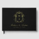 Elegantes Black and Gold Chinoiserie Wappen Hochze Gästebuch