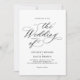 Die Einladung zur Hochzeit ist elegant und minimalistisch, mit klassischen schwarzen Kalligraphie- und Serif-Schriftart auf weißem Hintergrund.