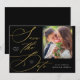Dieses romantische Schwarz-Gold- besticht durch moderne Kalligraphie und ein Foto. "" ist auf der Karte in eleganter Goldkalligrafie geschrieben. Rechts vom Skript können Sie ein quadratisches Foto hinzufügen. Ihre Namen, Ihr Hochzeitstermin und Ihr Hochzeitsort sind einzigartig im typografischen Design platziert.