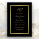 Elegantes Black Gold Monogram Probe Dinner Einladung