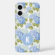 Elegantes Blue Hydragea Blume Muster Monogramm iPhone 16 Hülle