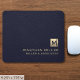 Elegantes Blue Leather Luxury Gold Initial Logo Mousepad