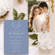 Elegantes Blue Monogram Wedding Foto Einladung