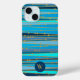 Elegantes Blue Stripes Muster Monogramm Case-Mate iPhone Hülle