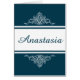 Elegantes Blumendesign mit Namensgebung und Streifen auf blau-weißem Hintergrund
