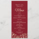 Elegantes, modernes rotes Hochzeitsmenü mit modernem Kalligrafieschrift und goldblühenden Spitzen.