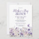 Elegantes florales Muttertagsbrunch Einladung zum Mittag- oder Abendessen. Personalisieren Sie den Text einfach für jeden besondere Anlass. Mit der perfekten Kombination aus modernen lila und Lavendel-Blume, Grün, Schmetterling, Drehbuch und Typografie wird dieses skurrile Einladungsmuster jedes Ereignis Anzug. Kontaktieren Sie uns für die Koordination von Party und Dekoration.