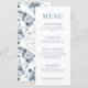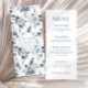 Genießen Sie den Charme Ihres Hochzeitsempfanges mit diesen eleganten und stilvollen Blumenkarten. Dekoriert mit zarten, staubblauen und grauen Blume-Bouquets mit Braut- und Bräutigamen, die ein zeitloses Blumenmuster auf der Rückseite zeigen.