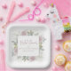 Dieser Papiercocktail oder Dinner-Serviette-Design besticht durch botanische, staubige Blume aus geblümten Rose, elegante Blätter aus Brautparty, Blumenblätterwald, eine minimalistische Typografie, einen modernen Kalligrafiebeschreiben, einen stilvollen, trendigen quadratischen Dessert oder eine Abendzeitung, einen sanften, wasserfarbenromantischen Gartenbuknüppel, ein helles pink, silber, eine simplizistische Eleganz, hübsche Blüte, ein schöner Sommer Herbst Winter