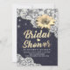 Modèle d'invitations de douches nuptiales - Fleurs de soleil élégantes, cadre de dentelle Vintage et lumières à cordes chic sur Arrière - plan bleu marine. Un Design Parfait Pour Votre Grand Jour ! Tous Les Style De Texte, Couleurs, Tailles Peuvent Être Modifiés En Fonction De Vos Besoins.