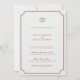 Diese exquisit gestaltete Einladung zeigt die zeitlose Schönheit der Tradition und der Eleganz und symbolisiert die Gnade und Klasse, die Ihren besonderen Tag bestimmen werden. Die warmen Brauntöne, ergänzt durch die sanfte ecru-Kulisse, schaffen eine raffinierte Palette, die Eleganz ausstrahlt. Der klassische Drehbuch-Schriftart fügt eine Touch der Romantik hinzu, die die Bühne für eine traditionelle und unvergessliche Feier bietet.