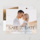 Ein elegantes Budget Foto Hochzeit Sichern Sie das Datum mit komplettem Foto, modernem Typ und einfachem Layout auf der Vorderseite. Die Rückseite hat 2 zusätzliche Fotos und weitere Details. Klicken Sie auf die Schaltfläche Bearbeiten, um dieses Design anzupassen.