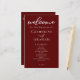 Dieses solide burgundische Hochzeitsprogramm bietet klassische weiße Schriften für eine Braut und einen Bräutigam, die in einem formellen Abend heiraten. Genießen Sie Romantik mit dieser reichen, kühlen Farbe. Minimalistische und romantische Typografie-Programme für ein modernes Paar.