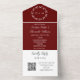 Burgund, elegant, rustikal, modern gefaltete Ehe, QR-Code Hochzeit alles in einer Einladung. Das dreifache, budgetäre Set. Sie können es mit Ihren eigenen Daten personalisiert.