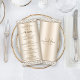 Dieses angesagte Champagner-Glitzer-Menü eignet sich perfekt für Ihre Hochzeitsdekoration. Die metallische Basis der Imitate ist oben und unten mit Damast gerahmt, und die Überschrift ist in der modernen Schrift Typografie. Auf der Rückseite ist ein elegantes Skriptmonogramm.