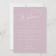 Dieses elegante, rosafarbene Hochzeitsgeschenk eignet sich perfekt für eine einfache Hochzeit. Das moderne minimalistische Design besticht durch zeitlose staubige Rose in Rosa und romantische Kalligraphie mit böhmischem Märchenstil, die sich perfekt für eine Hochzeit im Frühjahr oder im Sommer eignet. Auf der Vorderseite des Begrüßungstafels befindet sich ein Begrüßungsbrief und auf der Rückseite befindet sich die Zeitachse für die Hochzeitsreise. Diese Noten sind ideal für Hochzeiten in Urlaubsort und Begrüßungstaschen für Hotelgäste.