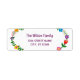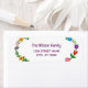 Stilvolles, individuelles Rücksendelabel für eine Familie (kann auch für eine Person angepasst werden), mit einem Blumenmotiv an den links und rechten Rändern und einem eleganten, zeitgenössischen, informellen Drehbuch für den Familiennamen oder Personennamen.