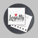 Frische, angesagte Visitenkartenvorlage für Beauty-Profis (Schönheitssalon, Friseur, Schminkkünstler, Nagel). Modernes Schwarz-Weiß-Design mit rotem Herz-Symbol.