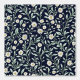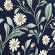 Dieses nahtlose Blumenmuster zeichnet sich durch zarte, weiße Gänseblümchen mit sanften gelben Mittelpunkten aus, umgeben von blassgrünen Blätter und winzigen Knospen. Alle Set sind vor einem von William Morris inspiriert, tiefmarineblau geprägten Hintergrund gehalten. Das Design besticht durch eine klassische, zeitlose Eleganz, die sich perfekt für Tapeten, Textilien und Schreibwaren eignet. Der Kontrast zwischen den lebhaften Blume und der dunklen Kulisse schafft eine raffinierte und beruhigende Ästhetik.
