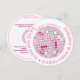 Ab dem Moment öffnen sie den Umschlag, werden Ihre Gäste den Spaß Ihrer Disco Hochzeit spüren. Diese runde Hochzeit Save the Date bietet einen funkelnden Disco-Ball, der SAVE THE DATE umkreist ist und Ihre Namen trägt. In einem inneren Gewölbeabschnitt werden Datum und Ort hervorgehoben. Es ist in Rosa und Rot auf weißem Hintergrund unterhaltsam und elegant und wirkt Save the Date für jede Disco oder Retro-Hochzeit. Retro-70er-Schriftart fügen eine grobe Touch. Auf der Rückseite ist Platz für zusätzliche Nachrichten und einen QR-Code für Ihre Hochzeitswebsite. Der gesamte Text wird von Ihnen personalisiert.