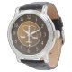Montre élégante avec écailles de symbole de justice avec arrière - plan marron.