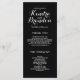 Elegante Hochzeitsprogramme. Weißer Text auf schwarzem Hintergrund. Design von Elke Clarke © Verfügbar unter www.zazzle.com/monogramgallery. Passen Sie mit Ihrer Hintergrundfarbe und all Ihren persönlichen Informationen ein einfaches und dennoch anspruchsvolles Programm an, das Ihre Saaldiener ausgeben können, wenn Ihre Gäste in die Kirche eintreten oder sich dort befinden, wo die Zeremonie stattfinden wird. Es hilft den Leuten, während der Zeremonie mitzumachen, aber auch als Pfand für Ihre Gäste. Sie können die Vorlagenfelder verwenden, um die vorgeschlagenen Informationen über Ihre Hochzeitsfeier und die Reihenfolge des Dienstes auszufüllen und Ihnen zu danken, oder wählen Sie "Anpassen" und verwenden Sie das Bearbeitungsmenü, um den Textabstand, die Schriftart, die Farben zu ändern, wie Sie Ihre eigenen Hochzeitsprogramme erstellen möchten.
