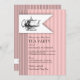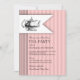 Elegante Streifen und eine empfindliche Vintage Teekanne kombinieren, um eine reizende Baby-Duschen-Tee-Party Einladung zu schaffen. Schwarzer Skript- und Hauptstadtstext mit an einem hübschen rosa Hintergrund, dieser weibliche Teeentwurf ist für eine Dusche perfekt, wenn erwartet ein Babymädchen Mama-zu-seien Sie!