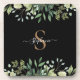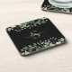 Personalisieren Sie diesen trendy eukalyptus botanischen Gold Monogramm Skript-Untersetzer mit Ihrem Namen.