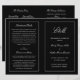 Dieses Programm ist eine 8.5 x 11-Seite, die Sie zum Zusammenbauen zusammenfalten müssen. Der weiße Rahmen ist in Dicke, Größe und Farbe bearbeitbar. Klassisches Schwarz-Farbenhochzeitsprogramm mit moderner Touch mit dem eleganten Drehbuch Ihrer Initialen.