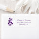 Elegantes florales Hochzeitsdesign mit einem dekorativen Kranz und vertikaler floraler Umrandung, die mit detaillierten botanischen Elementen geschaffen wurde. Die reichhaltigen violetten Blumen bilden einen romantischen und anspruchsvollen Rahmen, der perfekt für Hochzeitseinladungen, Save-the-Date-Karten, Menüs, Tischkarten und Festtags-Korrespondenz ist.