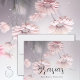 boda gracias - flores de margarita rosa de ensueño sobre fondo malva - caligrafía con swash, Ilustración usando Ai, arte de #generativecontent Creado por ©Whimsical Artwork™ Esto es parte de una suite vollständiga de artículos de papelería para bodas con artículos elería para bodas, baby dusche y otros events os a juego.