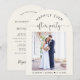 Elegantes bogenförmiges Sahnehäubchen oder private Hochzeitsankündigung und Empfang-Einladung mit dem Foto "Happily Ever After Party" in einer Mischung aus einfacher Typografie und einem stilvollen Drehbuch mit Wimpern, Vornamen, Hochzeitsdatum oder Empfang, verbunden mit einem Herz. Auf der Rückseite, personalisieren Sie Ihre Ankündigung und Einladung und fügen Sie Ihre Namen in einem signaturähnlichen Skript.