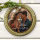 Ein elegantes Weihnachtsschmuck mit eigenem Foto, gerahmt durch ein stilvolles, grün goldfarbenes Metalldesign. Schön für ein erstes Weihnachtsfest zusammen, Verlobung, Hochzeit oder andere besondere Feier Urlaub.