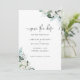 Dieses elegante Design besticht durch Ihre "Save the Date"-Details, weiche, weiße Lilien, Rose, Eukalyptusgrün und andere Aquarellelemente in staubigen Blues- und Salbei-Grüntönen. Auf der Rückseite der Karte befinden sich weiße Blumensträuße und Ihr Lieblings-Foto mit einem Skript "Save the Date"-Overlay. Ein schönes Design, perfekt für Frühling, Sommer, Herbst, Winterhochzeiten. Matching Zubehör erhältlich.