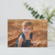 Elegantes Foto mit elegantem Typografie-Sprichwort "Happy Fall". Rückseite mit geometrisch warm braun Muster und Textvorlage für persönliche Nachricht und Adresse. Eine elegante Karte, um Kunden, Kunden, Familienmitgliedern und Freunden fallbezogene Nachrichten oder Erntedank zu schicken. Weitere Designs zu Erntedank- und Herbstthemen finden Sie in meinem Shop.