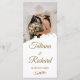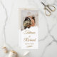 Dieses elegante Hochzeitsprogramm bietet Platz für ein Foto von Ihnen und Ihrem zukünftigen Ehemann, und Text in einem klassischen und raffinierten Gold-Skript.