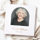 Gedächtliches Begräbnisguestbook mit Ihrem Foto in einem Bogenrahmen und dem Namen in einem eleganten Kalligraphie-Schriftart mit folgenden Daten.