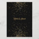 Dieses elegante, formale Hochzeitsmenü ist mit einem goldfarbenen Rahmen auf einem weißen Hintergrund mit goldenen Akzenten gestaltet. Der Text enthält: Hochzeitsmenü, Appetizer, Entre und Dessert Selection. Der umgekehrte Text enthält: The Bride and Groom's First Names, auf einem schwarzen Hintergrund mit goldfarbenen Konfetti. Um Ihre persönlichen Daten zu personalisieren, fügen Sie einfach Ihre Daten in unsere einfache Vorlage ein und ersetzen den Beispieltext.