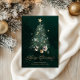 Versenden Sie warme Weihnachtsgrüße mit dieser eleganten Weihnachtskarte mit einem wunderschön illustrierten Tannenbaum, der mit goldenen Sternen geschmückt und von Geschenken umgeben ist. Die schimmernde goldene „Frohe Weihnachten“-Schrift verleiht einen Hauch von Luxus und festlicher Atmosphäre — perfekt für Freunde, Familie oder Kunden.