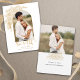 Elegantes Gold umrissen handgezeichnetes Spray aus Rose und Blattwerk mit Bogenfoto und bearbeitbaren Textfeldern. Zurück enthält zusätzliche Bildvorlagen und Textfelder.