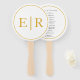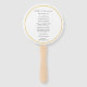 Elegantes Hochzeitsprogramm Handventilatoren mit Ihrem Monogramm in Imitat Gold und Ihre Details in Kursivschrift auf weißem Hintergrund. Diese Handfans werden Ihren Gästen den Service bieten und sind perfekt für eine Hochzeit im Freien geeignet.