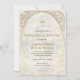 Einfach, elegant, kalligrafisch, elegant, elegant mit weißem Marmor-Probe-Dinner-Einladung mit vergoldetem Deko-Blumenrahmen, hochgradig goldenes Königskronenmonogramm und modernem Kalligraphieskript.
