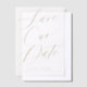 Einfache elegante Hochzeitsfeier Imitate Gold Overlay personalisierte Hochzeit speichern das Datum typografisches Skript Vellum Papier-Karte. Es kann mit einer separaten Karte mit einem Foto und anderen Details gepaart werden. Weitere Ideen finden Sie in der Sammlung.