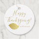 NewParkLane - Eleganter, personalisierter Erntedank Gefallen Tags, mit einem "Glückwunsch zum Erntedanken" im eleganten, Imitat Gold, Pinselskripttypografie und ein schlichtes, goldfarbenes Herbstblatt. Karo in dieser Herbstkollektion für passende Artikel, wie Servietten, Teller und mehr. Haben Sie spezielle persönliche Designwünsche? Kontaktieren Sie mich bitte!