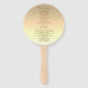 Einfache, elegante, minimalistische, weiße Hochzeitsprogramm Handventilator mit Goldfolie Seilkern und modernem Drehbuch.