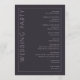 Dieses elegante Hochzeitsprogramm verfügt über ein minimalistisches Design mit dunkelgrauem Hintergrund und moderner, sauberer Typografie. Das Layout ist vertikal ausgerichtet und durch eine dünne weiße Linie in zwei Abschnitte unterteilt: einen für die einladenden Worte "WELCOME" in großer Serifenschrift und einen weiteren, der die Zeremonieereignisse in zentrierter Sans-Serif-Schrift auflistet. Anpassbare Platzhalter ermöglichen eine Personalisierung mit Namen und Daten, wodurch es perfekt für formelle Feiern ist. Die allgemeine Stimmung ist anspruchsvoll und erwartungsvoll, ideal für ein unvergessliches Ereignis.